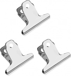 Vi presentiamo un set di tre clip massicce realizzate in metallo galvanizzato, che offrono un'elevata resistenza alla pressione. Queste clip hanno bordi lisci, un meccanismo flessibile e un foro che consente l'aggancio, rendendoli uno strumento pratico per l'uso quotidiano.