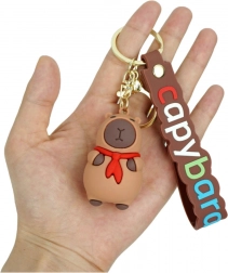 Il portachiavi è dotato di un solido moschettone e di un classico anello, che consentono di fissarlo facilmente a chiavi, borse, zaini, custodie o borse per il trucco. Questo design combina estetica e praticità, rendendolo l'accessorio ideale per l'uso quotidiano. L'etichetta in silicone con la scritta "capibara" in lettere colorate aggiunge al prodotto un carattere moderno e giovanile.