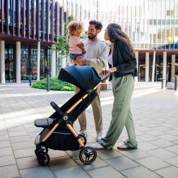 Progettato per il comfort dei bambini, con la possibilità di regolare lo schienale in tre posizioni, un innovativo pannello di ventilazione per un'ottimale circolazione dell'aria e un parasole regolabile XXL con filtro UPF +50. Il comfort è completato da un supporto per i piedi regolabile con cinque posizioni e una tasca pratica dietro lo schienale.