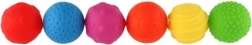 Un set colorato di sei palline morbide con diverse texture per i più piccoli sostiene lo sviluppo della motricità fine e grossa, la percezione sensoriale e l'esplorazione tattile. Ogni pallina ha una superficie e un colore diversi, fischia quando viene premuta ed è atossica. Ideale per stimolare il movimento e imparare divertendosi.