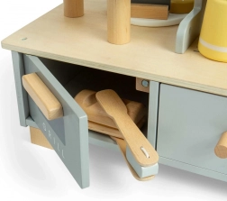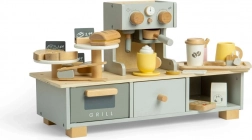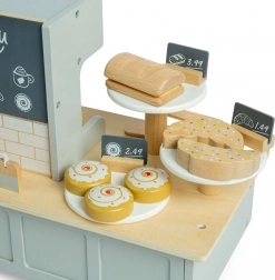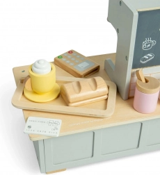 I bambini possono usare una carta di pagamento in legno e un terminale di pagamento proprio come in una vera caffetteria. Questo set offre ore di divertimento e consente lo sviluppo di abilità linguistiche e sociali.