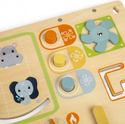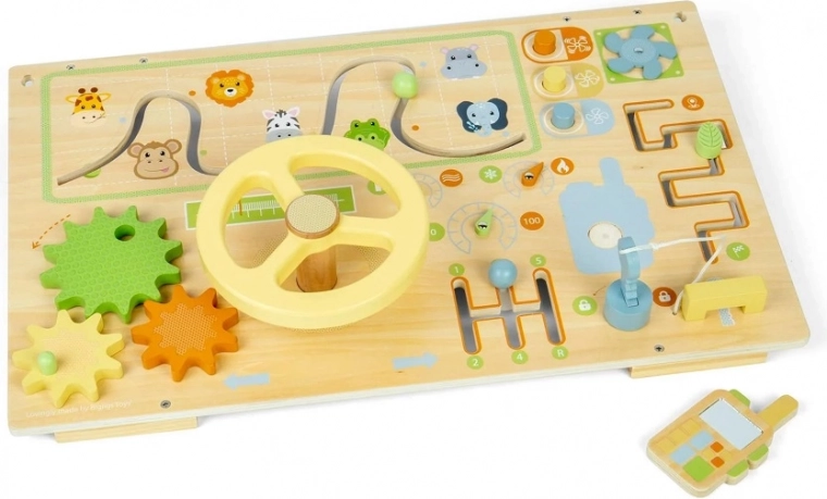 Questa tavola attività è piena di diverse attività come pulsanti, labirinto, ingranaggi, placchette rotanti e scorrevoli. Supporta la motricità fine e il coordinamento mano-occhio, sviluppa abilità di problem solving e comprensione delle connessioni causali. I bambini imparano attraverso il gioco e il divertimento!