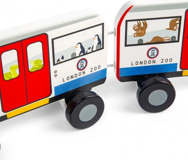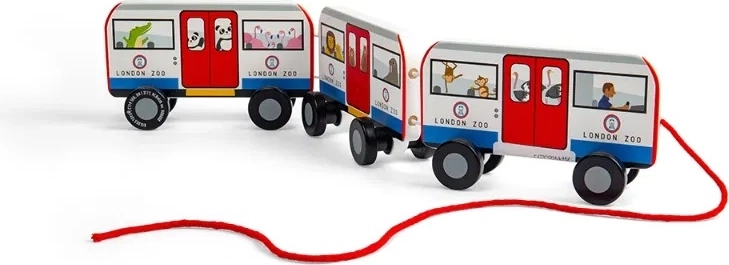 Questa replica storica della metropolitana di Londra con tre vagoni trasporta animali allo zoo di Londra, diventando così un ottimo compagno per il vostro bambino nei suoi primi tentativi di camminare. Il giocattolo da traino è realizzato in legno sostenibile con certificazione FSC®, garantendo rispetto per l'ambiente.