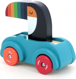 L'auto di legno con clacson è il giocattolo ideale per i bambini piccoli. Grazie alle ruote colorate e al tucano con un becco variopinto, attira l'attenzione e stimola il gioco divertente. Il clacson, che suona quando si preme sulla testa del tucano, offre un esperienza interattiva per i bambini piccoli, stimola il loro interesse e migliora le capacità di coordinazione.