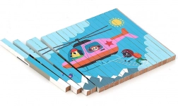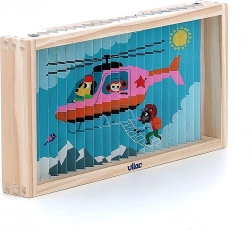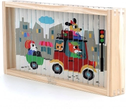 Scopri il mondo da prospettive diverse con questo puzzle in legno a quattro dimensioni. Grazie al design di Ingela P. Arrhenius, ti attendono quattro diverse illustrazioni: auto, nave, elicottero e treno. Inserendo i bastoncini di legno nel supporto, il bambino esplora non solo le immagini nascoste, ma sviluppa anche il pensiero logico e le abilità di osservazione.
