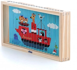 Vilac Puzzle in Legno 4D è un giocattolo innovativo per bambini che combina illustrazioni divertenti con lo sviluppo del pensiero logico e delle abilità motorie.