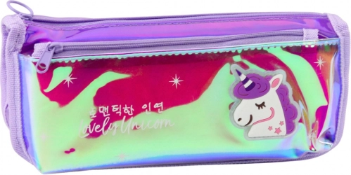 Stiloso e pratico, l'astuccio scolastico viola con unicorno è l'accessorio ideale per le esigenze scolastiche dei bambini. Realizzato in materiale olografico che cambia colore sotto la luce e attira l'attenzione con il suo aspetto magico.