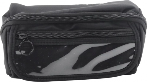La custodia è dotata di un ampio scomparto che offre spazio sufficiente per penne, matite, pennarelli o strumenti d'ufficio. Sul lato esterno c'è una tasca trasparente con chiusura a zip, ideale per piccoli oggetti da avere sempre a portata di mano. Aprendo la custodia si ottiene altezza aggiuntiva, aumentando la funzionalità.