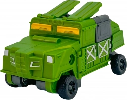 Trasforma la figura d’azione in un robusto veicolo da combattimento verde in pochi passaggi. Ruote e pannelli visibili indicano dove ripiegare: riusciranno anche i bambini.