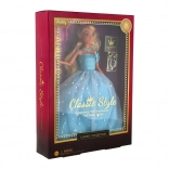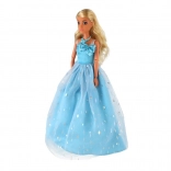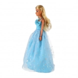 Lungo abito azzurro con delicati riflessi e decorazioni floreali che trasforma la bambola nella regina di ogni festa immaginaria.