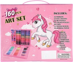 Scopri il mondo della fantasia con questo set creativo da pittura con unicorno. Nella pratica valigetta di plastica troverai 160 accessori artistici – matite colorate, pennarelli, pastelli a cera, acquerelli e altri strumenti che supportano la creatività e lo sviluppo della motricità fine. Ideale per creare a casa e in viaggio grazie alle dimensioni compatte e alla disposizione ordinata degli accessori.