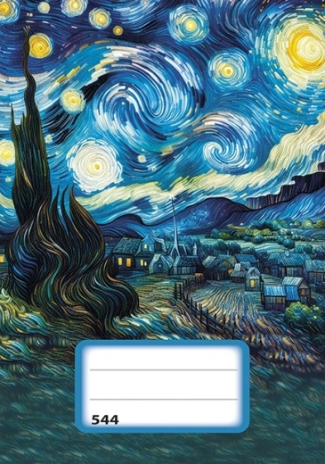Quaderno moderno e resistente con pagine a righe e motivo "Notte stellata" ideale per scolari e studenti. La copertina di qualità in cartoncino garantisce una lunga durata.