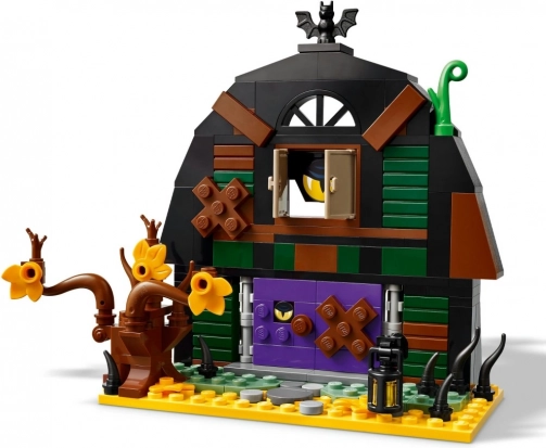 Costruisci un fienile scricchiolante con pareti scure, porte viola e un pipistrello sul tetto. All'interno scoprirai tante sorprese – dai “denti” nascosti dietro le porte all'occhio decorato, fino alla boccetta verde e al contenitore nero. Sono inclusi anche un albero e una lanterna che completano l'atmosfera misteriosa.