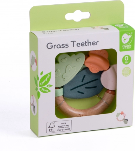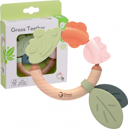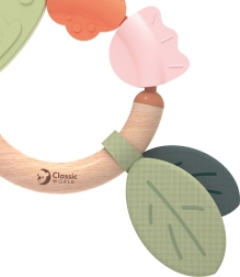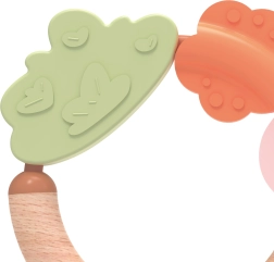 L'unica combinazione di legno naturale e morbido silicone stimola i sensi e incoraggia l'esplorazione del mondo, rendendolo il primo massaggiagengive e sonaglio perfetto per ogni bambino.