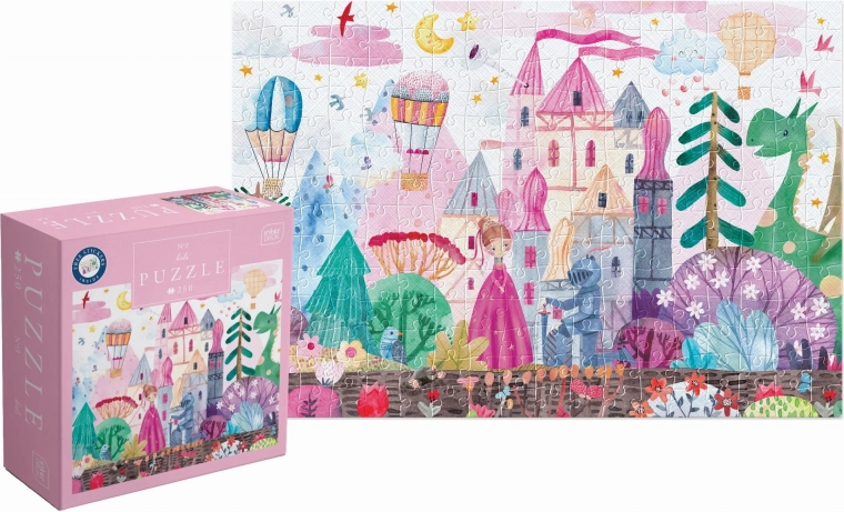 Goditi tanto divertimento con il puzzle Castello con 250 pezzi, che comprende un foglio di adesivi per ancora più creatività!