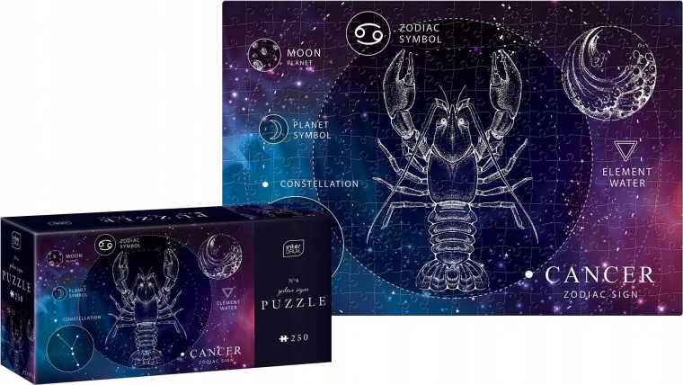 Puzzle Zodiaco Cancro con 250 pezzi. Dimensioni 48x33 cm. Ideale per relax creativo e decorazione.