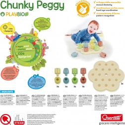 Chunky Peggy è un set di costruzioni colorate progettato per sviluppare la motricità fine e la coordinazione oculo-manuale dei bambini. Grazie all'uso di materiale biocomposito di legno e plastica, molto rispettoso dell'ambiente, questo giocattolo è allo stesso tempo sostenibile e divertente. Una volta immersi nel mondo dei colori e delle forme: