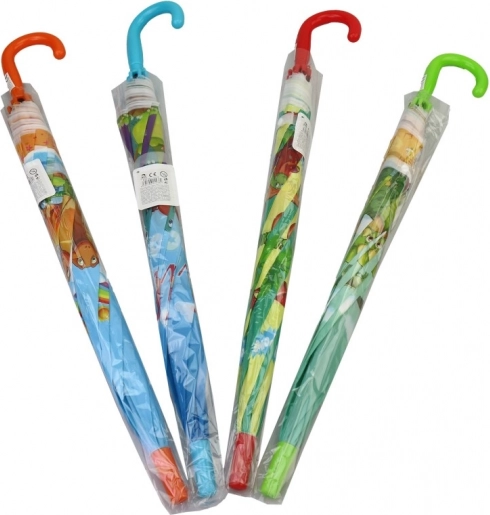 Ombrello con motivo di dinosauri è la scelta ideale per giovani avventurieri dai 3 anni. Con una lunghezza di 65 cm e una larghezza di 80 cm offre protezione affidabile dalla pioggia e facile maneggevolezza grazie alla sua leggera struttura in plastica.