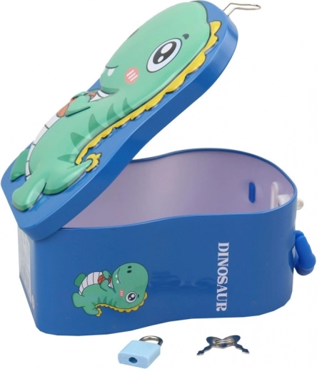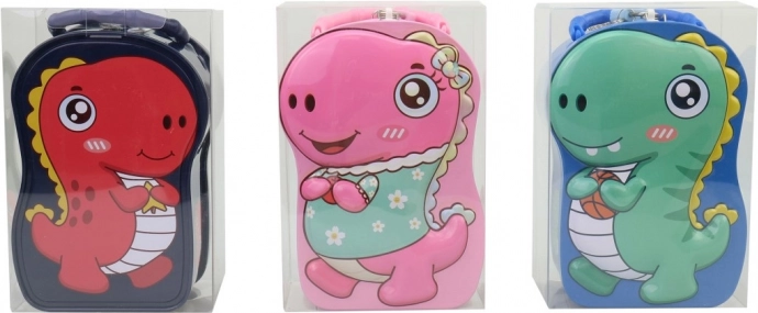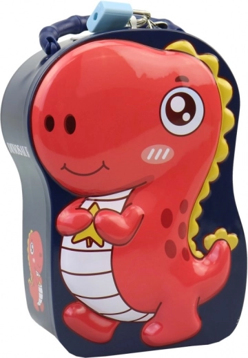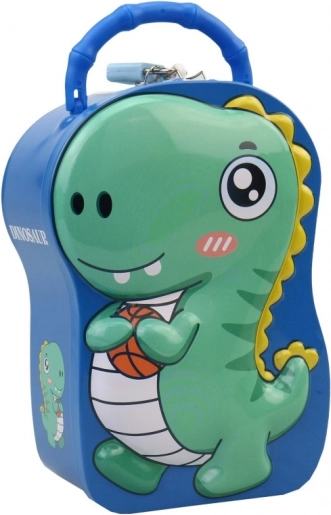 Salvadanaio dinosauro in metallo per bambini dai 3 anni, 18x12 cm, resistente, leggero, diversi colori.