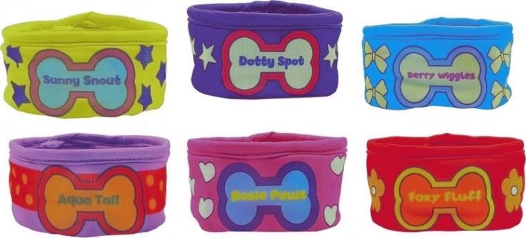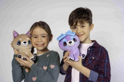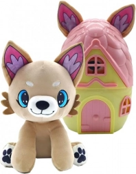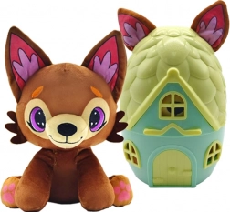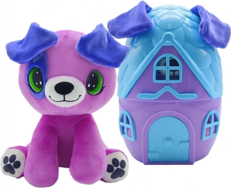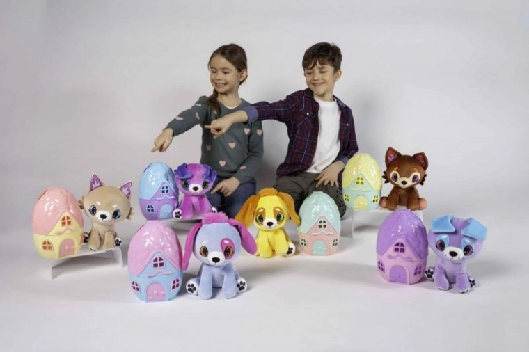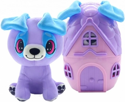 La collezione include adorabili giocattoli di peluche in colori come viola, marrone, blu, giallo e rosa. Ogni giocattolo è dotato di una casetta per un facile deposito.