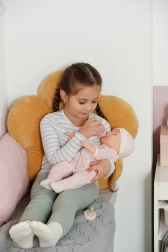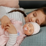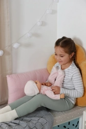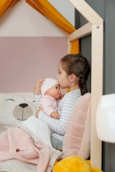 Annabell, alta 43 cm, ha un corpicino morbido ideale per gli abbracci e il gioco delicato. La tecnologia interattiva garantisce reazioni naturali – quando ciuccia il ciuccio o beve dal biberon muove la boccuccia e, a seconda della situazione, chiude o apre gli occhi. Grazie alla culla rilassante, la addormenti facilmente in ben due direzioni.