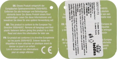 Questo lemure catta di peluche seduto cattura fedelmente il fascino del lemure del Madagascar: dal manto grigio-bianco morbido fino all’iconica coda a strisce. Grazie alla dimensione compatta di 15 cm è ideale per culla, passeggino e viaggi.