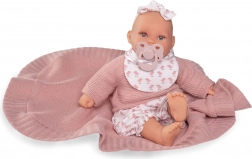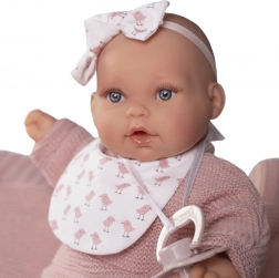 Tirando fuori il ciuccio dalla bocca, la bambola piange e dice 'mamma' e 'papà'.