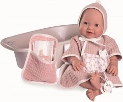 Questa bambola spagnola è il regalo ideale per i vostri figli. È fatta a mano e il suo corpo in vinile intero è piacevole al tatto. Dettagli come le pieghe del neonato e la rappresentazione realistica dei genitali danno la sensazione di un vero neonato.