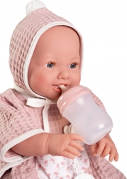 La bambola viene fornita con un biberon riempibile, due pannolini usa e getta e una vaschetta per un maggiore divertimento dei bambini durante il gioco. Confezionata in una scatola regalo e raccomandata per bambini dai 3 anni.