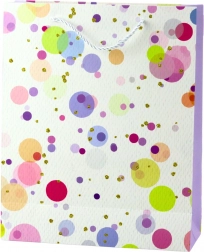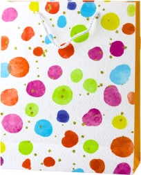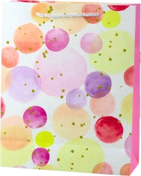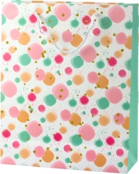 Questa borsa regalo attira l'attenzione con il suo design originale e carattere unico, conferendo al tuo regalo un aspetto distintivo. I delicati punti pastello e neon combinati con dettagli dorati creano un look sottile ed elegante.