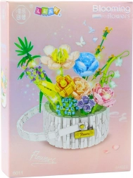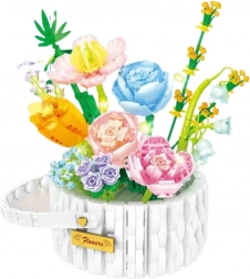 Il set include rose, tulipani, mughetti e altri fiori che danno al modello un aspetto realistico. I fiori sono posizionati in un elegante cesto intrecciato con manico, il che rende il modello creato un interessante ornamento d'interni.