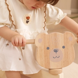 La sicurezza è aumentata dal blocco dello sterzo, che limita l’eccessiva rotazione del manubrio. Durante il gioco i bambini sviluppano naturalmente equilibrio, coordinazione e motricità grossa. Il simpatico frontale “da orsetto” e il design naturale si integrano perfettamente nella cameretta.