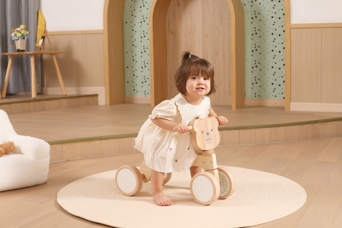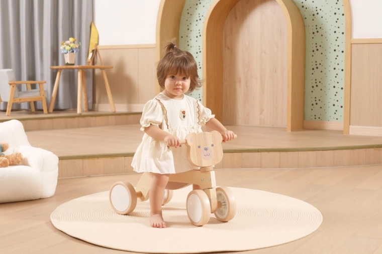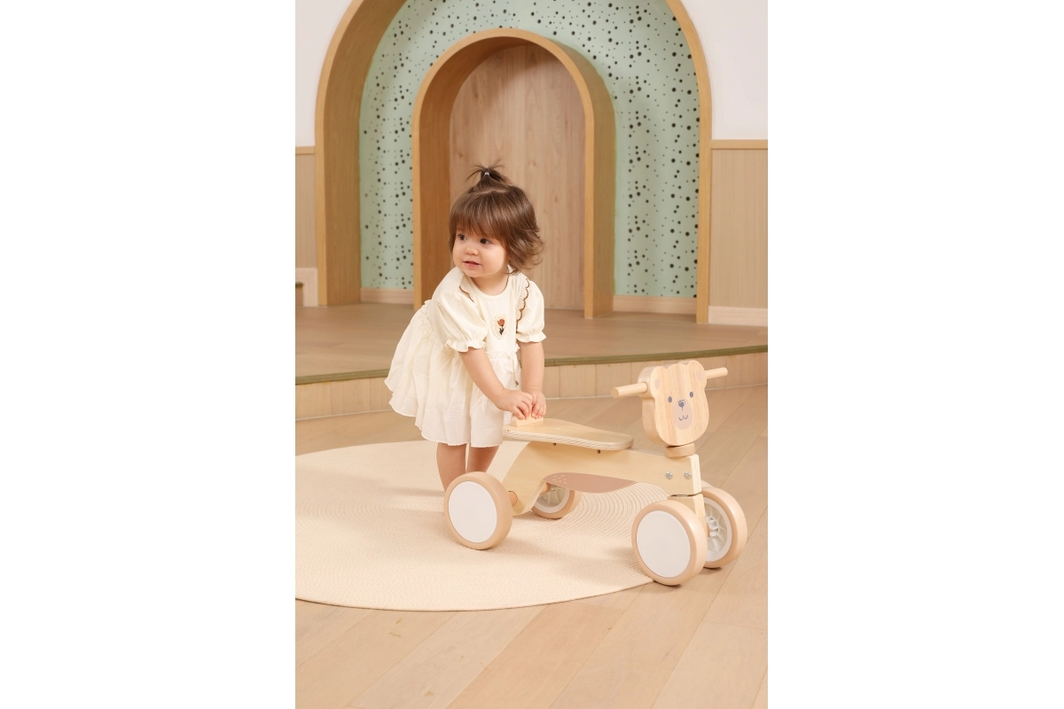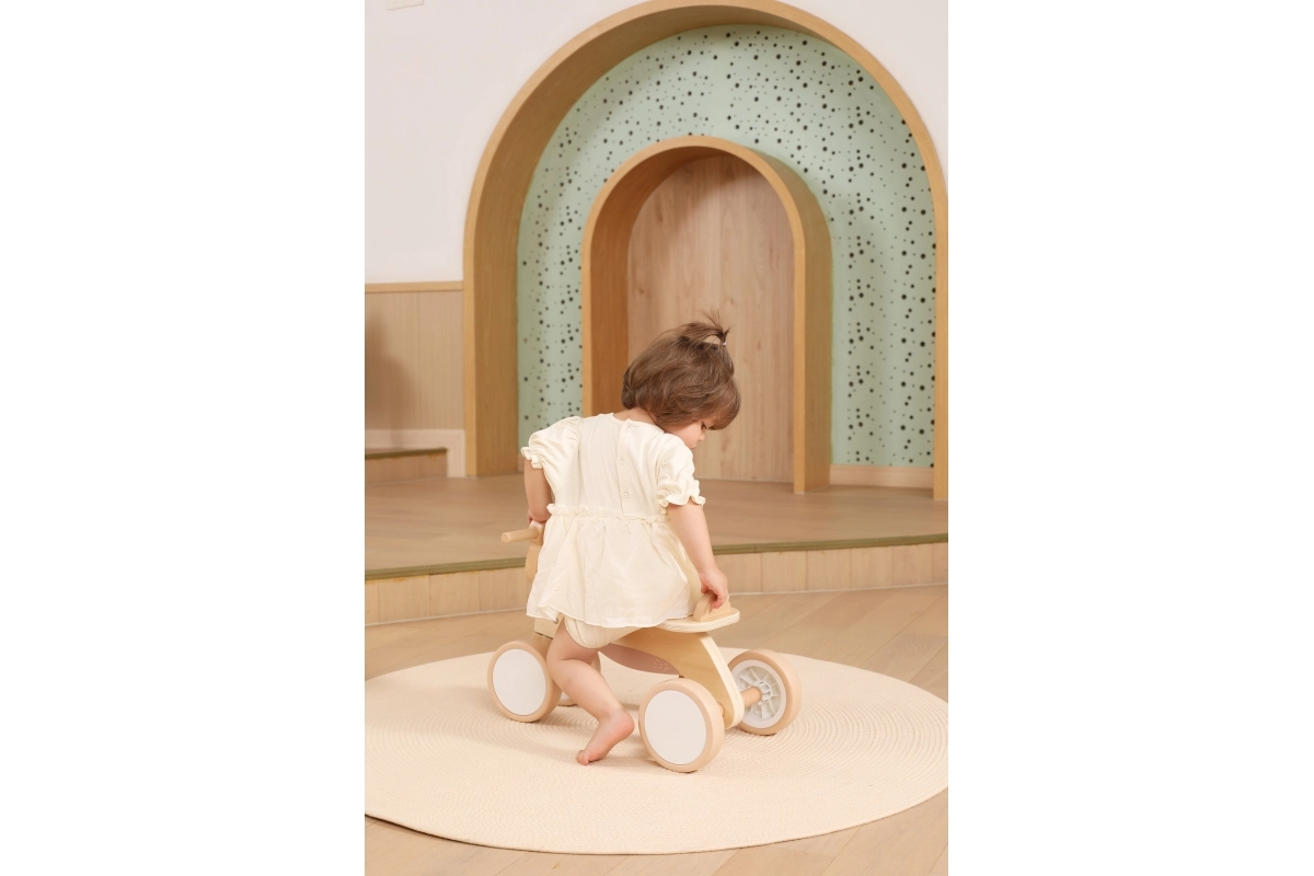 La bicicletta senza pedali VIGA PolarB è progettata per i piccoli piloti che imparano coordinazione ed equilibrio. La solida struttura in legno, la sella bassa con schienale e i bordi arrotondati e levigati offrono sicurezza a ogni spinta. Le quattro ampie ruote in EVA scorrono silenziose e non rigano il pavimento, risultando ideali per gli interni e per superfici esterne lisce.