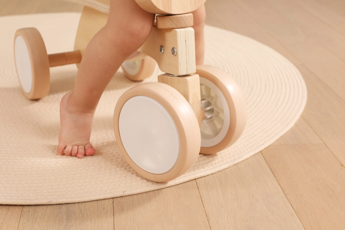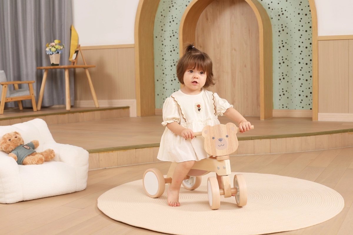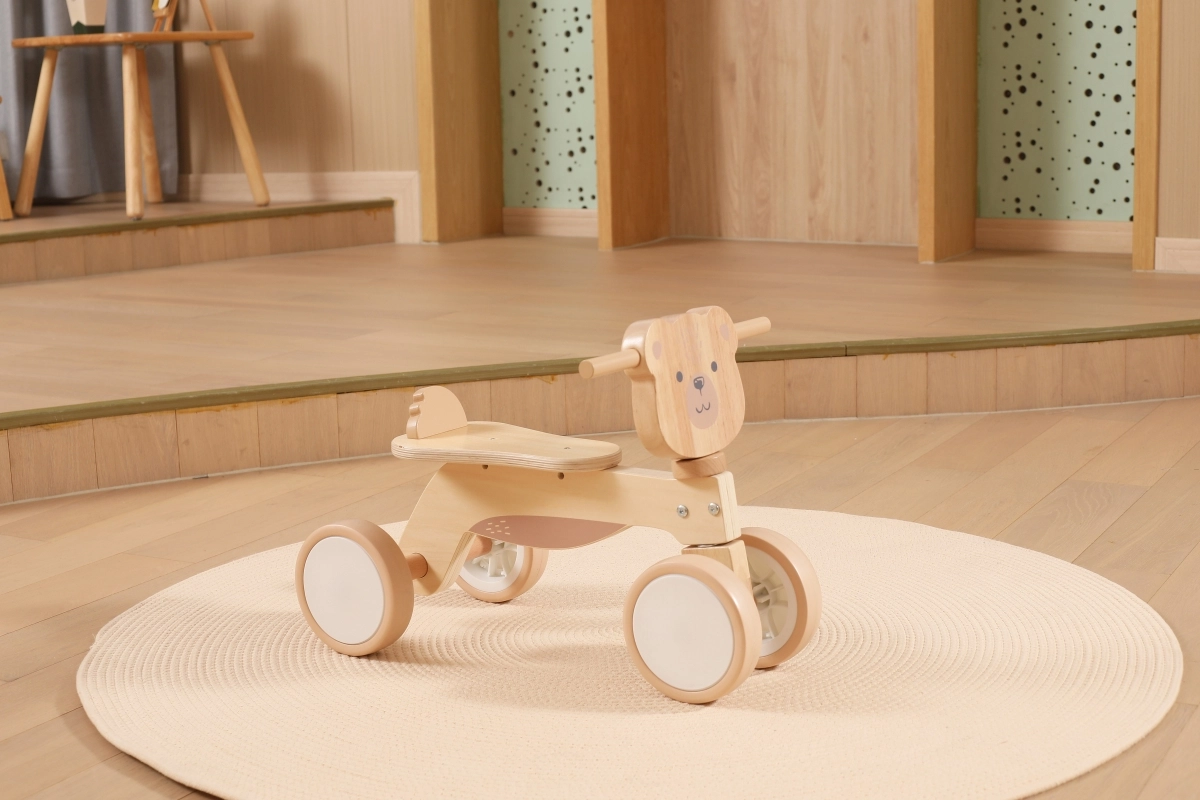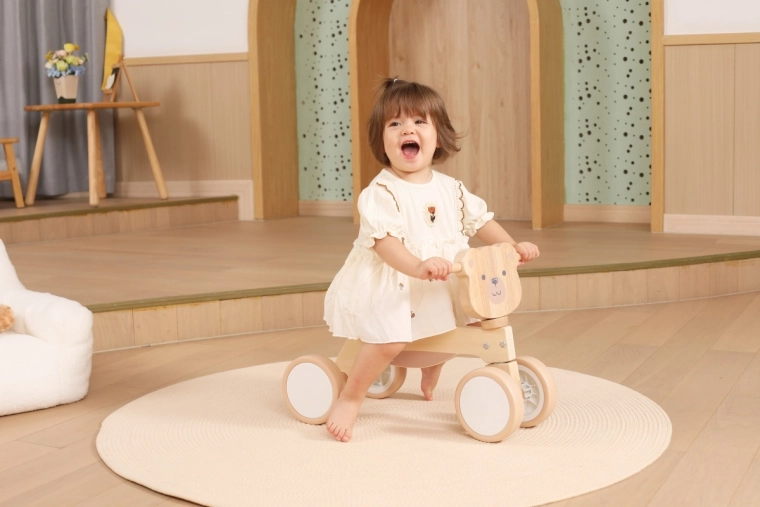 La bicicletta senza pedali VIGA PolarB è progettata per i piccoli piloti che imparano coordinazione ed equilibrio. La solida struttura in legno, la sella bassa con schienale e i bordi arrotondati e levigati offrono sicurezza a ogni spinta. Le quattro ampie ruote in EVA scorrono silenziose e non rigano il pavimento, risultando ideali per gli interni e per superfici esterne lisce.