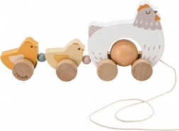 Gallina di legno con pulcini da trainare – divertimento e apprendimento in uno! Questo adorabile accessorio è il compagno perfetto per i bambini che iniziano a camminare. I pulcini si muovono allegramente mentre vengono trascinati, e l'uovo rimovibile ruota per un divertimento extra. Il giocattolo non solo diverte, ma sostiene anche lo sviluppo della coordinazione e delle abilità motorie del bambino.