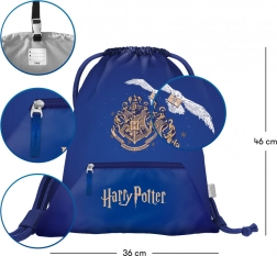Elegante sacca scolastica con motivo Hogwarts ed Edvige, ideale per ciabatte, abbigliamento e attrezzatura sportiva. Offre una pratica tasca con zip, cordini robusti per un trasporto confortevole e materiale resistente e lavabile. Grazie al passante con fibbia si aggancia facilmente allo zaino o alla cartella.