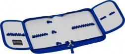 L’astuccio a un livello con zip YKK, taschina e finestrella per l’orario (senza contenuto) è completato da una pratica sacca con tasca frontale con zip, moschettone per aggancio allo zaino e robuste coulisse per portarla a spalla.