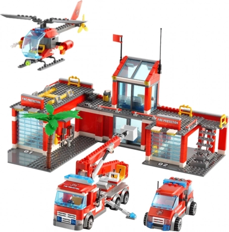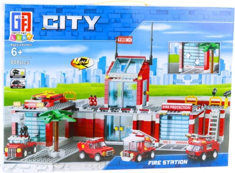 Set costruzioni stazione dei vigili del fuoco con veicoli 808 pezzi