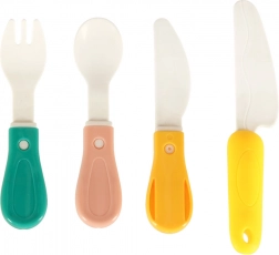 Grazie all’elevato numero di elementi i bambini possono giocare al negozio, alla cucina o al ristorante. Tagliare, servire e cucinare con la teierina, la pentola e il tagliere sviluppa fantasia, comunicazione e sostiene l’acquisizione di abitudini alimentari sane.