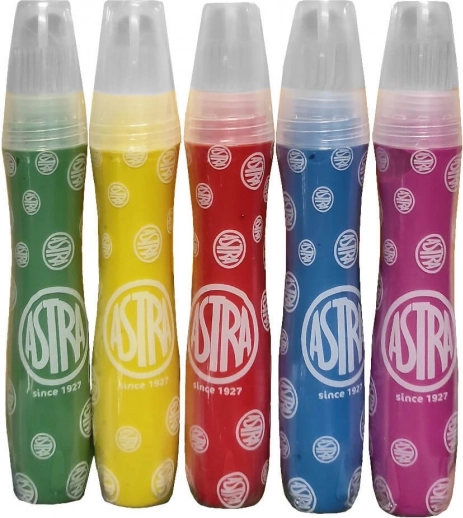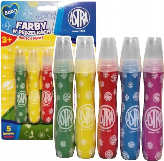 ASTRA colori nei pennelli, 5 pz. Sicuri per bambini dai 3 anni, dosaggio facile con una pressione, ideali per carta e cartoncino per la scuola e le attività creative a casa.