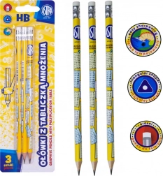 Set di tre matite ASTRA con durezza HB e pratica stampa delle tabelline che facilita lo studio e la scrittura. Offrono un corpo ergonomico triangolare per una presa confortevole, una mina da 2,2 mm di qualità e una pratica gomma all’estremità. Il legno proviene da foreste gestite responsabilmente.