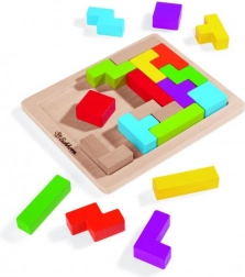 Intelligente puzzle in legno per 1 giocatore che favorisce lo sviluppo della motricità fine e del pensiero logico. Include 20 blocchi colorati in legno di faggio in 5 forme diverse e una robusta tavoletta in compensato delle dimensioni di 18 × 15 cm per un assemblaggio preciso delle forme.