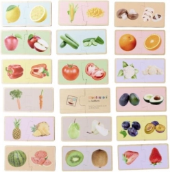Scoprite un modo divertente per insegnare ai bambini a riconoscere frutta e verdura. Questi puzzle Montessori in legno sono composti da 36 tessere con immagini realistiche, sviluppano la motricità fine, il pensiero logico e il vocabolario. Realizzati in 100% legno di tiglio certificato FSC, adatti dai 2 anni.