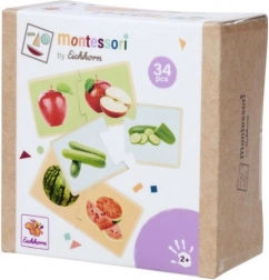 I puzzle Montessori in legno a tema frutta e verdura insegnano ai bambini ad abbinare correttamente le tessere uguali e a nominare i vari alimenti. Le illustrazioni realistiche aiutano a collegare il gioco alla vita quotidiana e favoriscono un apprendimento naturale attraverso il gioco.