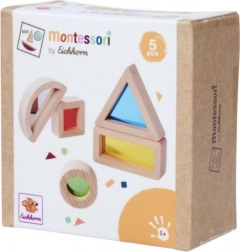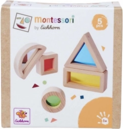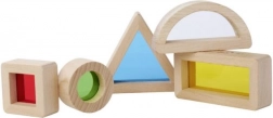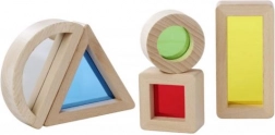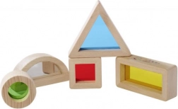 I cubi di forme diverse invitano a sperimentare con luce, colori e forme. I bambini possono osservare il mondo attraverso lenti colorate, mescolare i colori o esplorarsi grazie all’effetto specchiato. La lavorazione accurata in solido legno di faggio garantisce una piacevole sensazione al tatto e lunga durata.