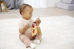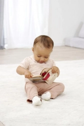 Il pratico anello per il fissaggio consente di portare il librino in sicurezza in viaggio e di assicurarlo al passeggino o al seggiolino auto. È realizzato in legno di tiglio 100% con certificazione FSC, soddisfacendo i requisiti di un giocattolo di qualità e sostenibile per i più piccoli dai 12 mesi.