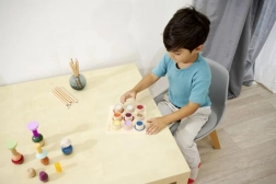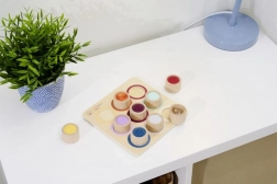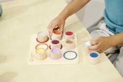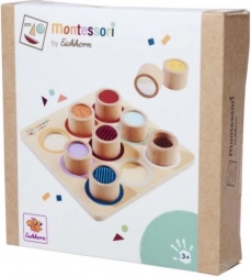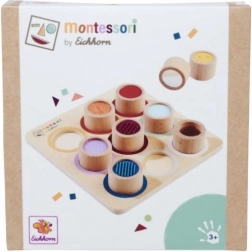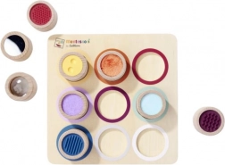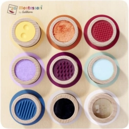 Questa tavola tattile Montessori è progettata per motivare i bambini a esplorare attivamente e confrontare diverse superfici e texture. I nove cilindri separati offrono un'esperienza sensoriale varia che sviluppa la percezione tattile, la concentrazione e la coordinazione occhio–mano.