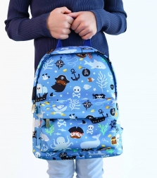 Il grazioso zainetto con motivo piratesco conquisterà i bambini e i genitori ne apprezzeranno la lavorazione curata. Lo scomparto principale contiene merenda, borraccia e piccoli oggetti, mentre la tasca frontale con zip tiene tutto a portata di mano. L’ergonomia è garantita dagli spallacci imbottiti e dal pannello posteriore confortevole, mentre la cinghia pettorale aiuta a mantenere gli spallacci in posizione anche durante la corsa.