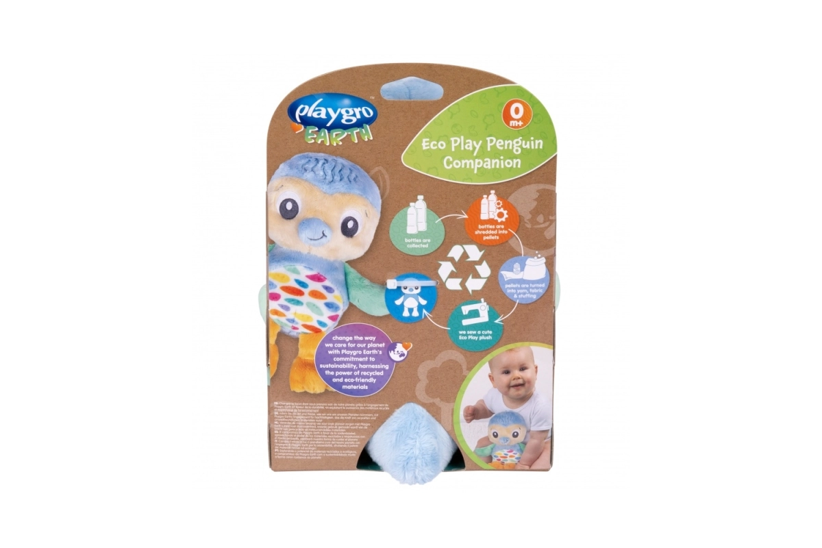 Il simpatico pinguino del marchio Playgro è un giocattolo ecologico realizzato con bottiglie di plastica riciclate, adatto ai bebè dai 3 mesi. Offre un materiale extra morbido per una sensazione di sicurezza, motivi vivaci per stimolare la vista ed è gentile con il pianeta – il compagno ideale per il gioco e per un sonno sereno.