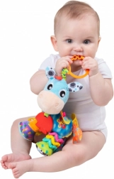 Il dolce cavallino Trottolino di Playgro è un morbido giocattolo da appendere che favorisce lo sviluppo sensoriale del bebè. Offre un massaggiagengive per alleviare il fastidio della dentizione, elementi fruscianti e sonagli per la stimolazione di vista, udito e tatto e una pratica clip a C per fissarlo facilmente al passeggino, al seggiolino auto o alla culla.